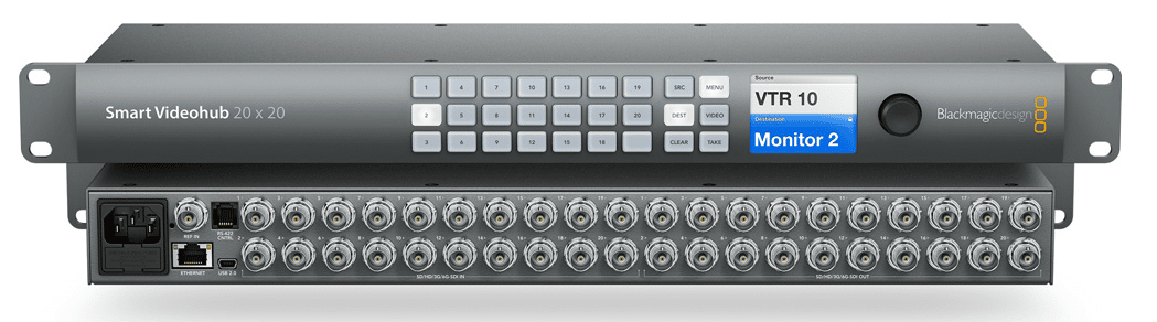 SDI-Videoausgänge: 20 x 10 Bit SD-SDI, HD-SDI und 6G-SDISDI-Raten: DVB-ASI, 270 Mbit, 1,5G, 3G, 6GPassend dazu: Blackmagic Smart Control Pro hier erhältlich!